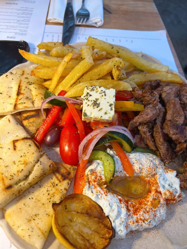 From the moment you step inside the heritage-style venue, the mood is immediately welcoming. Think moody lighting, soft Grecian textiles overhead, and a friendly team that treats you like part of the family. Whether you’re seated at a sunlit table or perched at the bar, the atmosphere encourages lingering over cocktails, plates, and laughter.